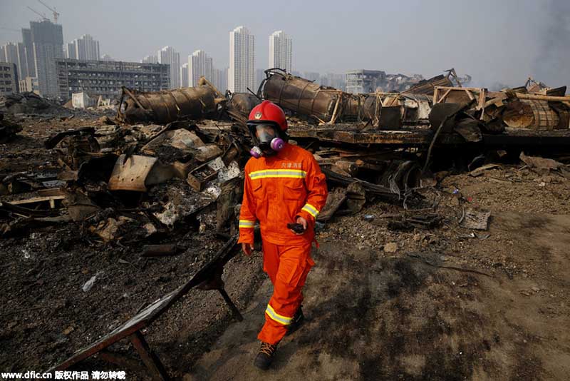 TIANJIN, 16 de agosto (Diário do Povo Online) - Os bombeiros continuaram último sábado (15) as operações de resgate no local da explosão em Tianjin, por onde ainda estava saindo fumaças pretas.