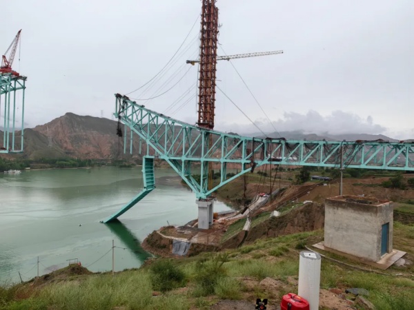 A ponte em construção sobre o Rio Amarelo é um projeto de arco de treliça de aço. A previsão era de que seu vão principal fosse fechado até o final deste mês.