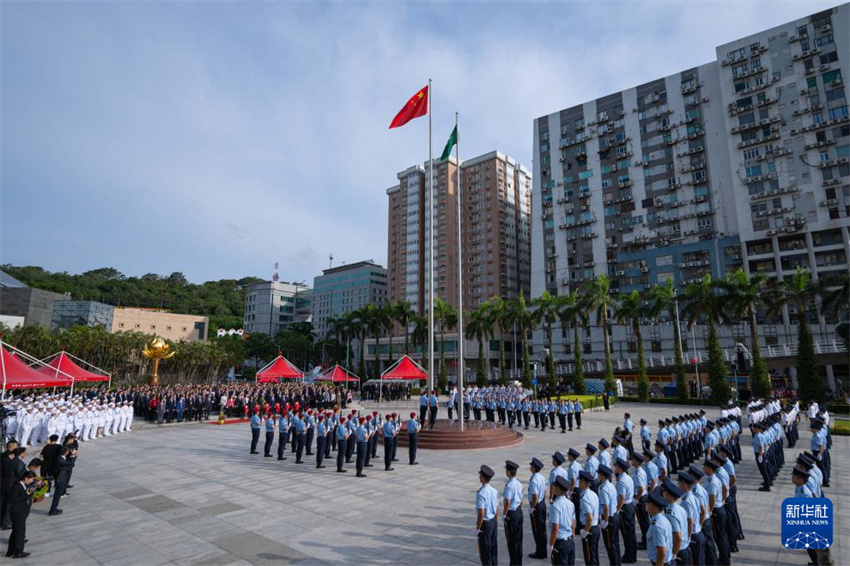 A cerimônia de hasteamento teve início às 8h, na Praça de Lótus Dourado. Uma guarda de honra conduziu a bandeira nacional e a bandeira da RAEM até o local. Ao som do hino nacional, os presentes prestaram homenagem solene enquanto as bandeiras eram erguidas.