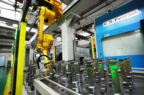 Braço robótico opera em uma linha de produção inteligente da Harbin Turbine Company Ltd. em Harbin, na Província de Heilongjiang, nordeste da China, em 26 de fevereiro de 2025. (Xinhua/Wang Song)