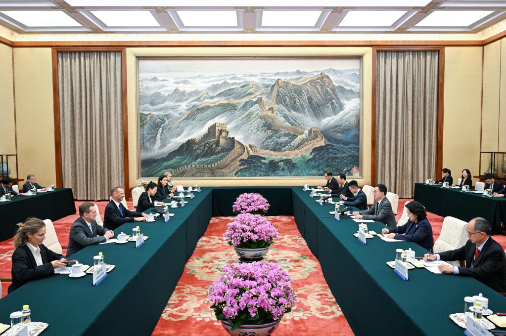 O vice-presidente chinês, Han Zheng, reuniu-se com Emmanuel Bonne, conselheiro diplomático do presidente francês, em Beijing, nesta quinta-feira.