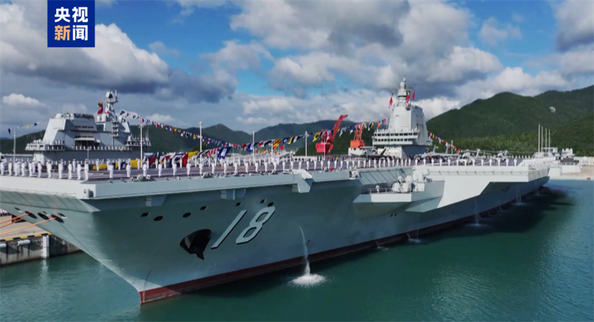 A cerimônia de incorporação e entrega de bandeira do Fujian — o primeiro porta-aviões chinês com sistema de catapulta eletromagnética — foi realizada no dia 5, em um porto militar em Sanya, na província de Hainan.
