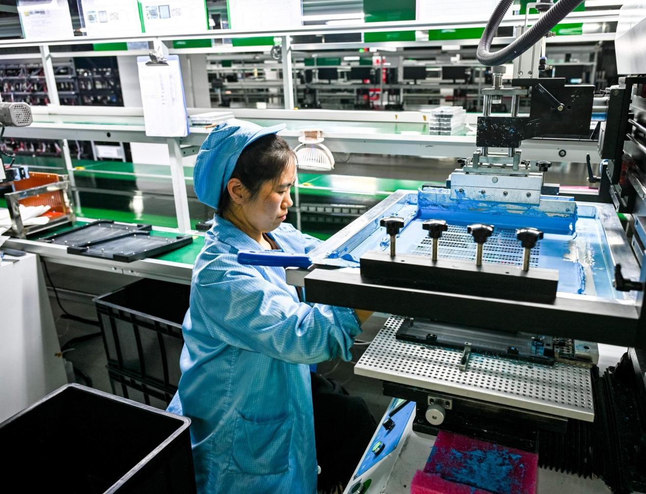 Placas de vídeo (GPUs) são fabricadas numa oficina de uma empresa de tecnologia em Nanchong, província de Sichuan, no sudoeste da China. (Foto: Yang Bo)