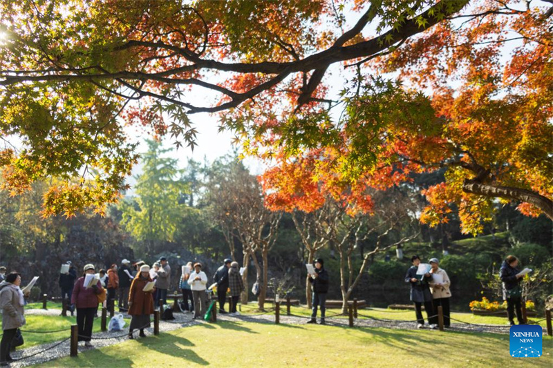 Grupo coral no parque do Lago Mochou, em Nanjing, província de Jiangsu, leste da China, em 21 de novembro de 2025. (Foto: Sun Zhongnan/Xinhua)