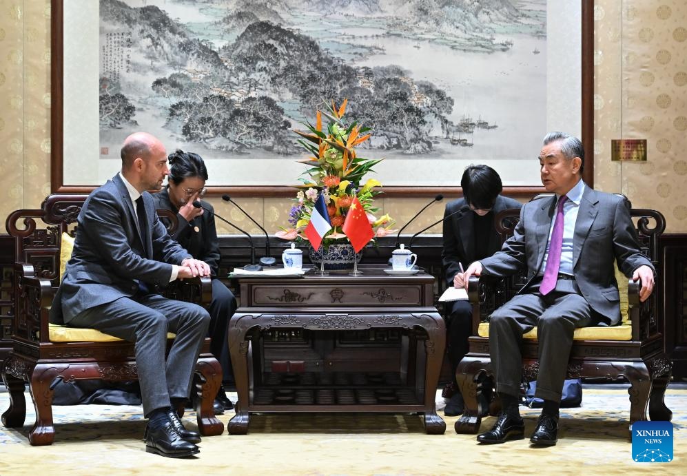 O ministro chinês das Relações Exteriores, Wang Yi, reuniu-se com o ministro francês das Relações Exteriores, Jean-Noel Barrot, na quarta-feira, em Beijing.