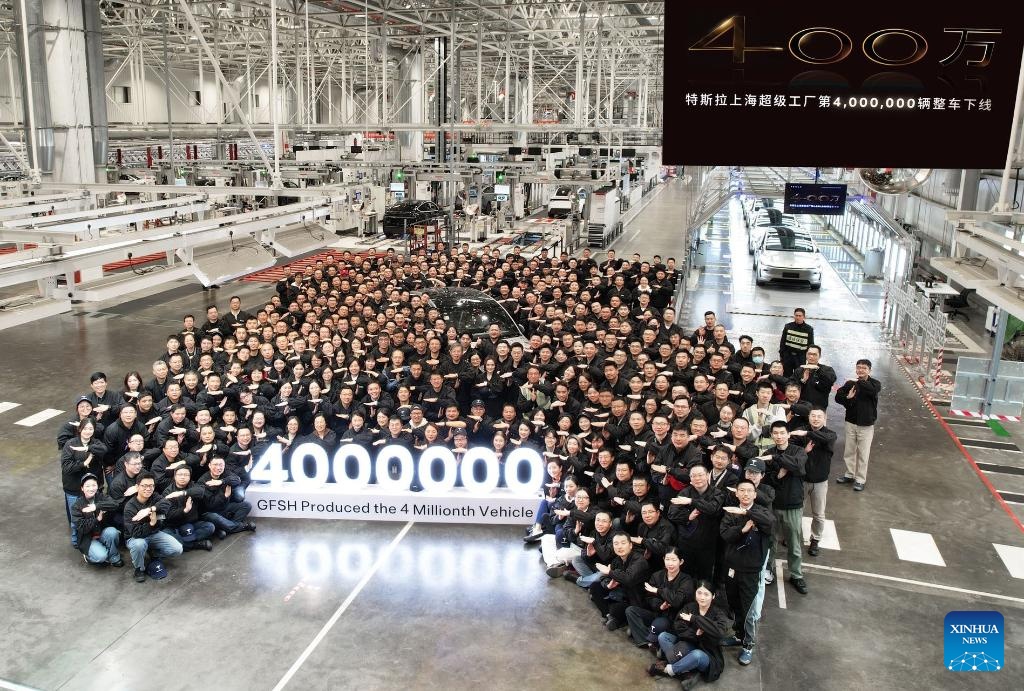 A Gigafábrica da Tesla em Shanghai produziu seu quarto milionésimo veículo na segunda-feira, o que representa um novo marco à medida que a fabricante de automóveis dos Estados Unidos aprofunda seu desenvolvimento no compasso do setor de novas energias da China, que está em rápido crescimento.