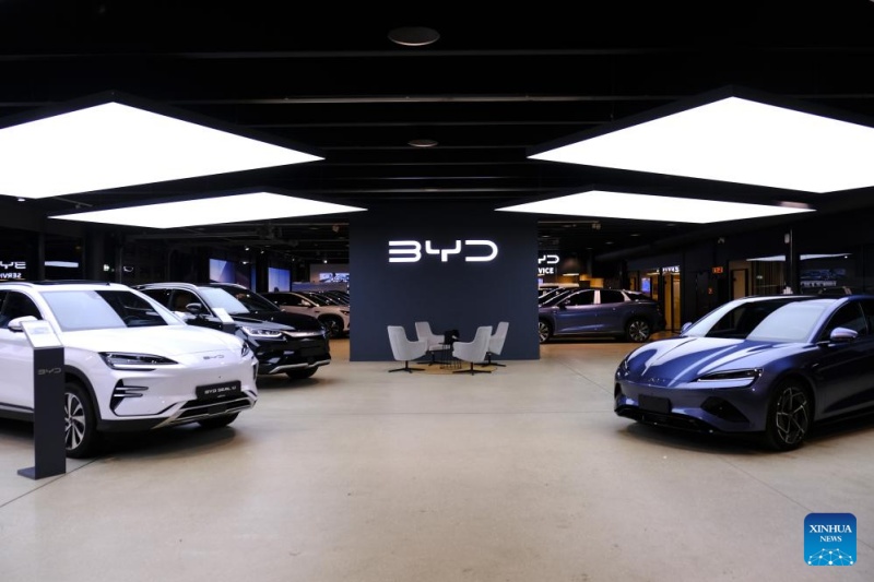 Foto tirada em 2 de janeiro de 2026 mostra concessionária da montadora chinesa BYD em Oslo, capital da Noruega.(Foto de Chen Yaqin/Xinhua)