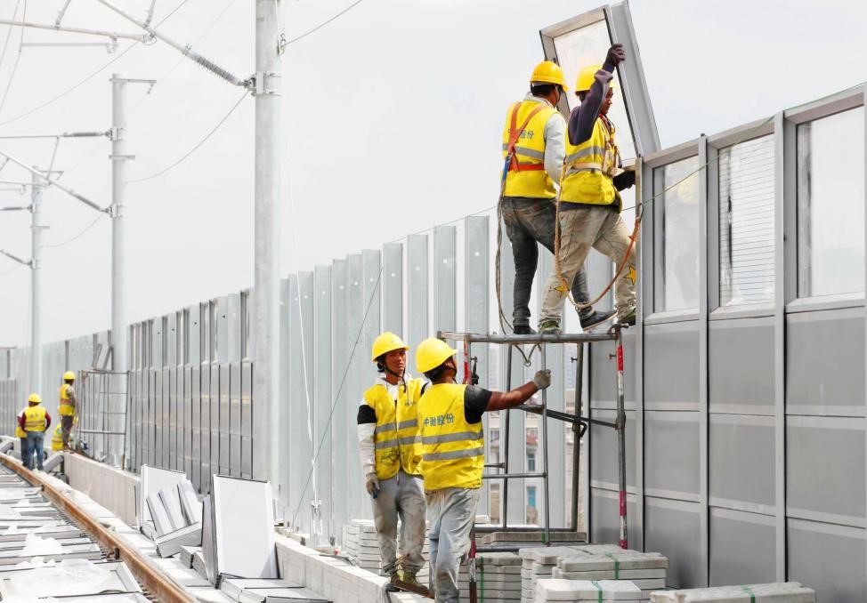 Barreiras acústicas foram instaladas ao longo de um trecho ferroviário em Taizhou, na província de Zhejiang, leste da China. (Foto: Liu Zhenqing)