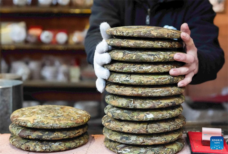 A vila de Nakeli, que antes era palco de animadas caravanas de camelos carregando sacos de folhas de chá enquanto percorriam a vasta região oeste da China antiga até o Sudeste Asiático e o Oriente Médio, tornou-se hoje um destino popular para turistas no inverno, graças à sua cultura singular da Rota do Chá e dos Cavalos e ao clima agradável. Além de visitarem sítios históricos, os turistas também podem se envolver em atividades como a produção de chá pu'er, percorrer caminhos antigos a cavalo e degustar pratos típicos do patrimônio cultural imaterial. (Chen Xinbo/Xinhua)