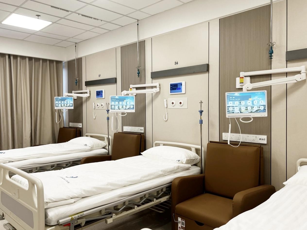 Nas enfermarias do Hospital Popular da Nova Área de Liangjiang, município de Chongqing, sudoeste da China, os pacientes podem ajustar a iluminação, fechar as cortinas e visualizar os sinais vitais em tempo real com um simples toque em uma tela interativa ao lado da cama. Um sistema inteligente de monitoramento de infusão sincroniza o progresso da infusão entre as camas, enquanto um radar de ondas milimétricas e dispositivos vestíveis rastreiam simultaneamente a frequência cardíaca e a respiração.