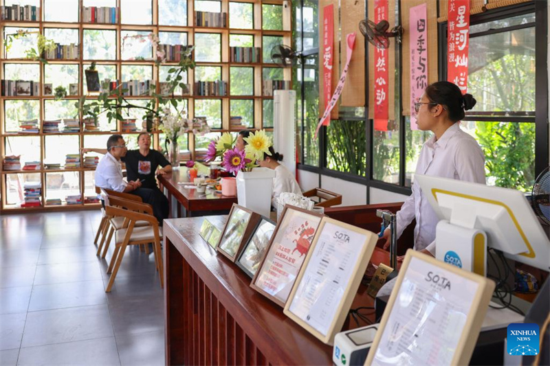 Como um exemplo vívido do boom do negócio do café em aldeias, o condado abriga agora 18 cafeterias distintas, que misturam o café com a cultura local para criar uma atmosfera rural autêntica. (Zhang Liyun/Xinhua)