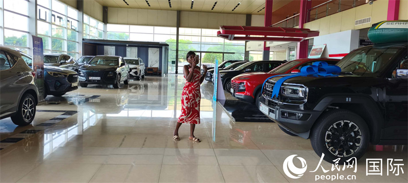 Perto da "China Town" de Luanda, capital de Angola, novos veículos de marcas chinesas como Jetour e Soueast estão alinhados de forma organizada. Dentro de um stand de exposição da Jetour, a vendedora local, Wilma, apresenta os modelos em transmissões ao vivo, misturando português com inglês, demonstrando grande profissionalismo.