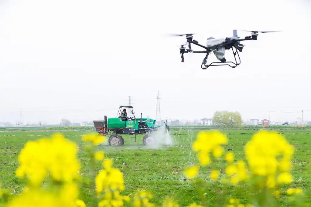Em uma fazenda inteligente em Kunshan, na província de Jiangsu, mais de 3.800 mu (aproximadamente 253 hectares) de terras agrícolas contam com drones e sistemas de IA para realizar a irrigação e a fertilização de precisão. Um produtor em Changzhou observou que, ao utilizar drones agrícolas, a fertilização de 500 mu de terra pode ser concluída em menos de dois dias; "A tecnologia torna a gestão mais precisa, e estamos confianntes de que teremos uma colheita farta."
