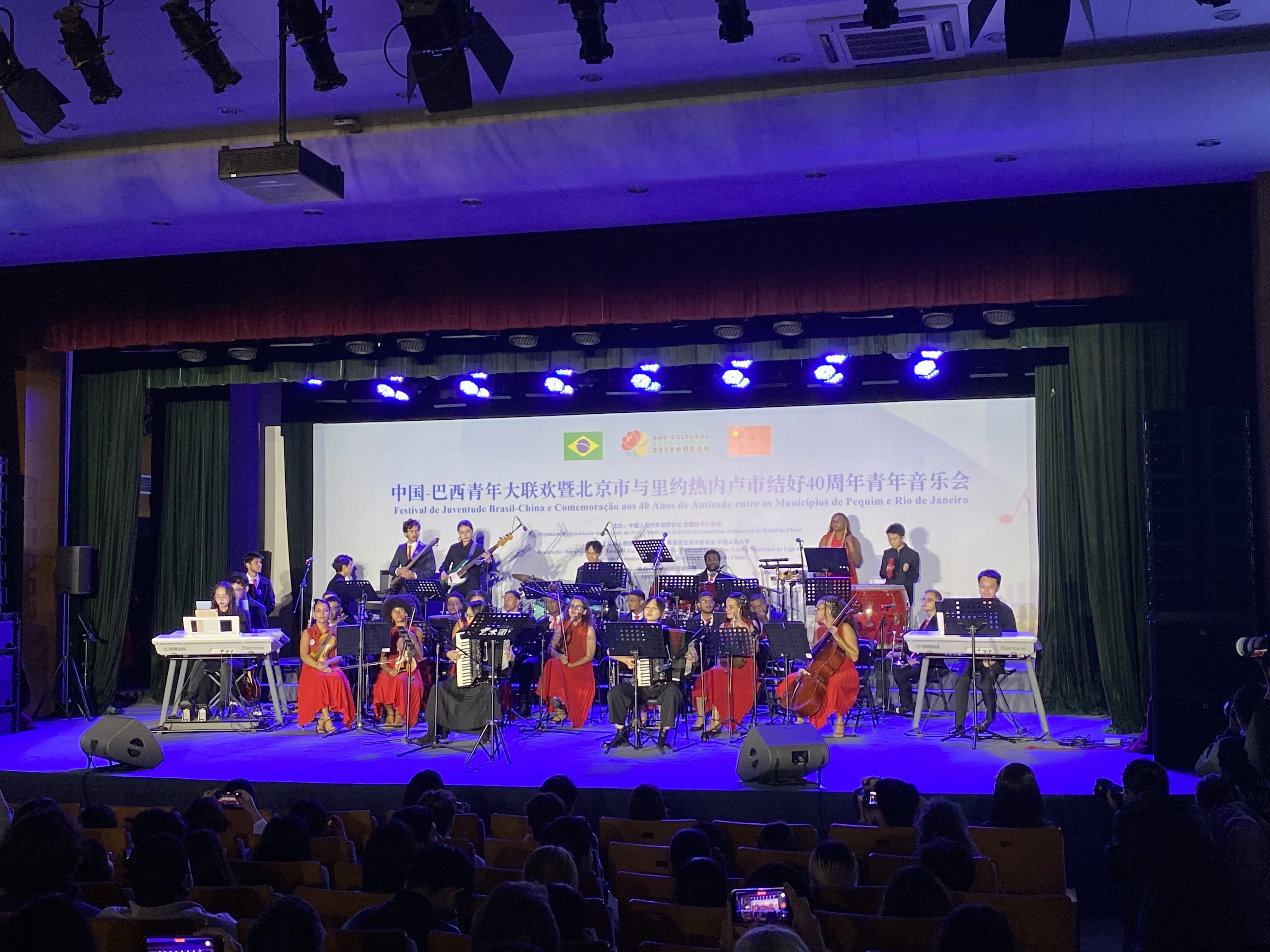 O concerto na Universidade Renmin reuniu diferentes expressões artísticas, incluindo música tradicional chinesa, Ópera de Beijing e performances conjuntas entre brasileiros e chineses.